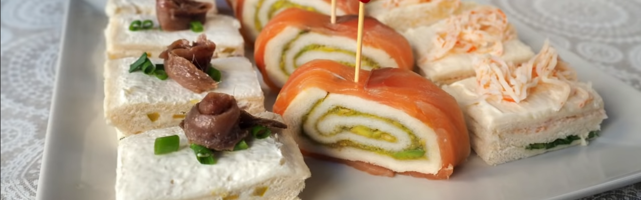 - Prima idea: mescolate la polpa dell’avocado con succo di limone, sale e pepe. Stendete il composto sul pane e poi arrotolatelo. Stendete le fette di salmone e avvolgete con il pane.