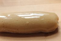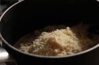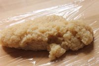 Spegnete il fuoco e versate il composto ottenuto su una superficie larga in modo che si raffreddi velocemente (7). Versate il composto ottenuto sulla pellicola alimentare (8) e arrotolatelo come se fosse una caramella. Sigillate i bordi e mettete in frigorifero per circa tre ore (9).