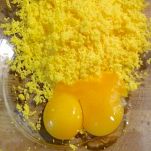 Prendete le uova sode e scartatene gli albumi, raccogliete i tuorli in una ciotola e aggiungete un tuorlo crudo. Schiacciate con una forchetta e mescolate fino a ottenere un composto liscio e omogeneo. Salate e pepate a piacere.