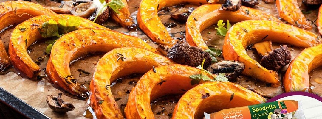 Avete detto Halloween? Non può mancare un contorno a tema, con l’ingrediente più mostruoso che esista: la zucca, accompagnata naturalmente dai nostri funghi. Pulite la zucca, togliete la buccia e tagliatela a fette di uguale dimensione. Passate i Funghi Trifolati Spadella il gusto in padella per qualche minuto prima di metterli in forno. Mettete nella pirofila la zucca tagliata a fette, i funghi e l’aglio tritato finemente. Condite con sale, pepe, abbondante olio extravergine d’oliva e un trito di rosmarino e maggiorana. Eccovi pronto un contorno da brivido! Buon appetito!