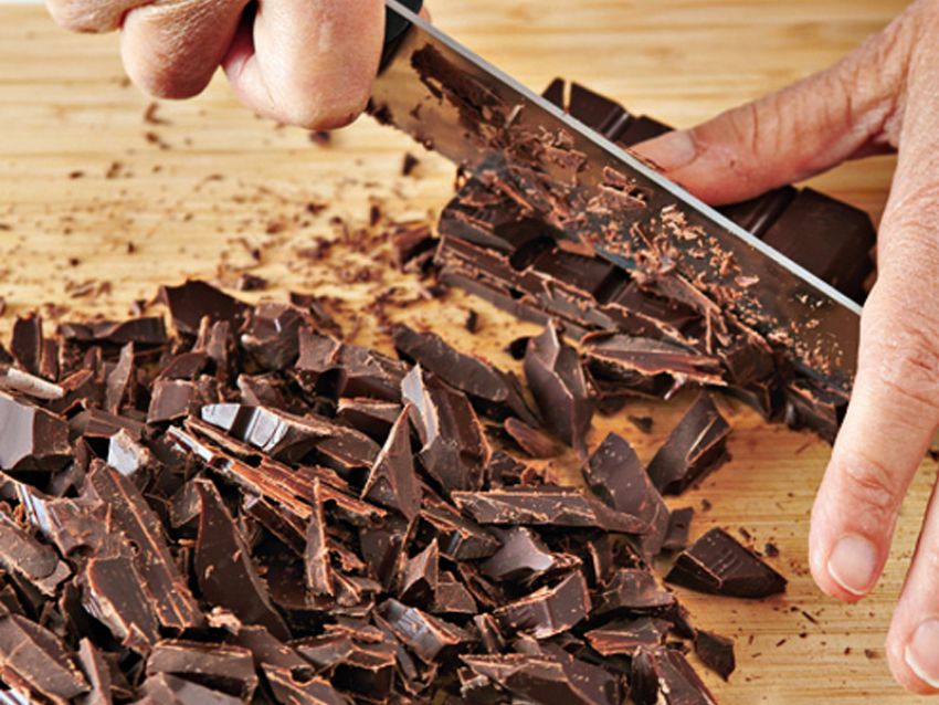 Come preparare la mousse vegana al cioccolatoTrita grossolanamente 240 g di cioccolato fondente al 70% di cacao con un coltello robusto.