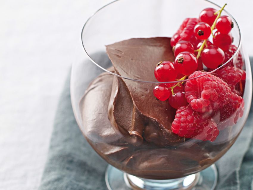 Dividi la mousse vegana al cioccolato nelle coppette e servi, se ti piace, con frutti di bosco.
