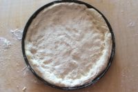 Riprendete l’impasto e lavoratelo pochissimo con le mani (7). Dividete il tutto in due parti (8) perché una vi servirà per la base della focaccia e l’altra per il “coperchio”. Oliate uno stampo rotondo o di qualsiasi altra forma (9).