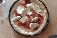 Stendete l’impasto sulla base (10) aiutandovi con il mattarello se preferite. Preparate il condimento: tagliate a fette la mozzarella e ponetele sopra la pasta. Aggiungete le fette di prosciutto crudo (11). Per ultimo stendete la pasta per chiudere il tutto (12). Sigillate bene e lasciate, come per la pizza, uno spazio più gonfio all’altezza dei bordi. Cuocete in forno preriscaldato a 180° per 30 minuti e servite la focaccia ripiena ancora calda.