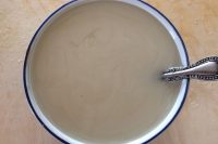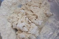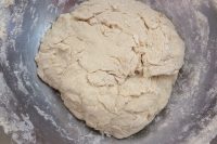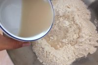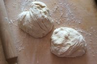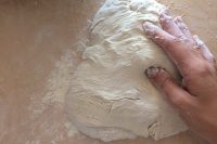Aggiungete il lievito disciolto nella farina (4). Mescolate con un mestolo grande in acciaio o un semplice cucchiaio (5) e unite l’olio e il sale. Lavorate l’impasto con le mani fino a formare una palla soda. Quando l’impasto non si attacca più alle mani mettetelo a riposare, coperto da un canovaccio, per 3 ore (6).