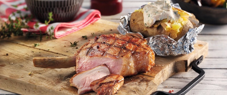 Ricetta per gli amanti di barbecue e carne con l’osso. Tomahawk Ribeye o bistecca gigante, la mera passione dei carnivori, con classiche patate al cartoccio